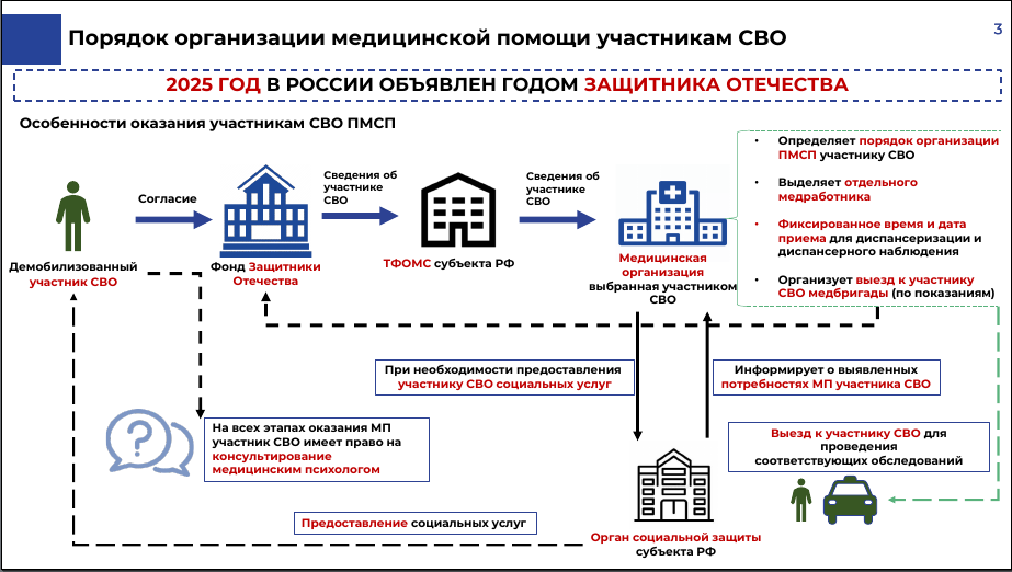 В рамках объявленного Президентом России Года Защитника Отечества в Программе госгарантий утвержден особый порядок оказания медицинской помощи отдельным категориям ветеранов боевых действий. Получить ее могут демобилизованные участники СВО.